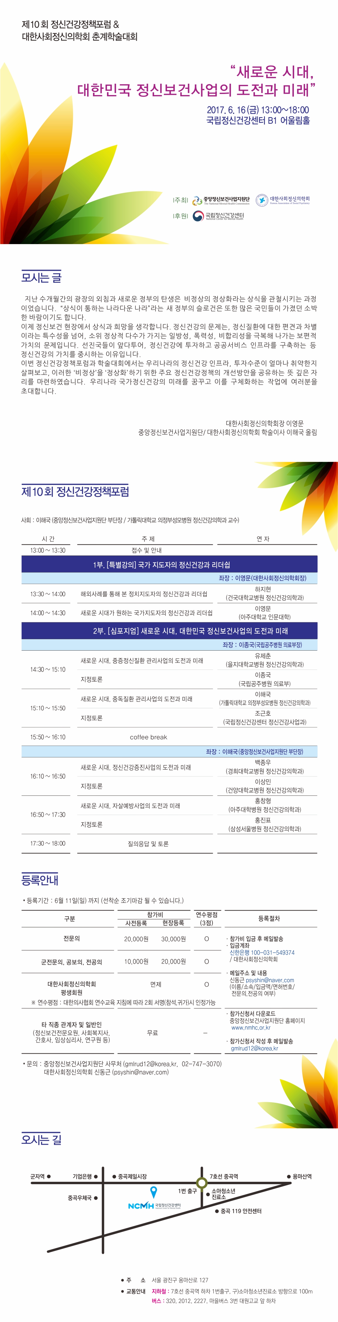 * 참가비 : 무료 (, 의사협회 연수평점 필요시 유료이며, 대한사회정신의학회 통해 등록가능)