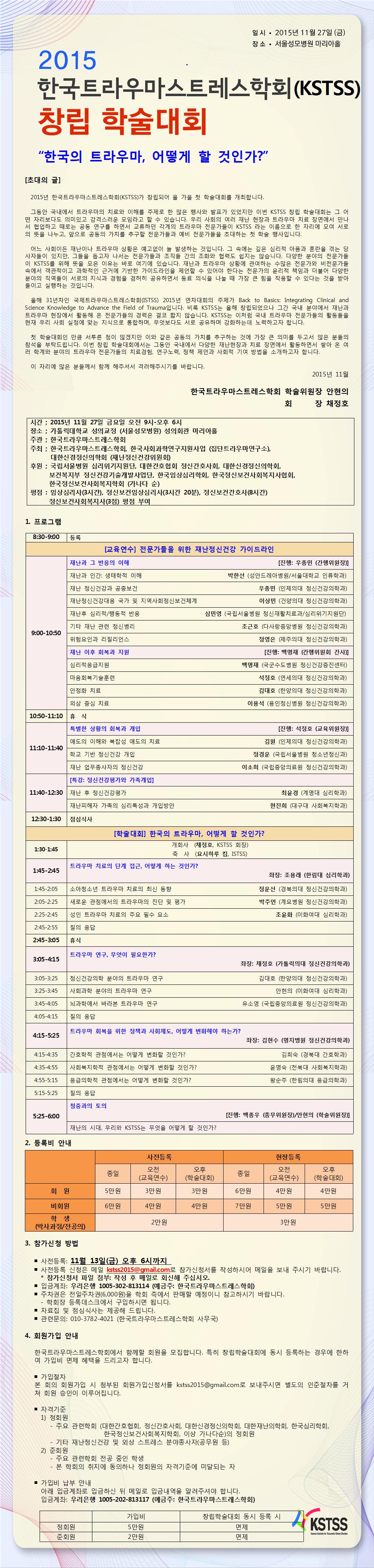 ♤ 행사명 : 2015년 한국트라우마스트레스학회 창립학술대회