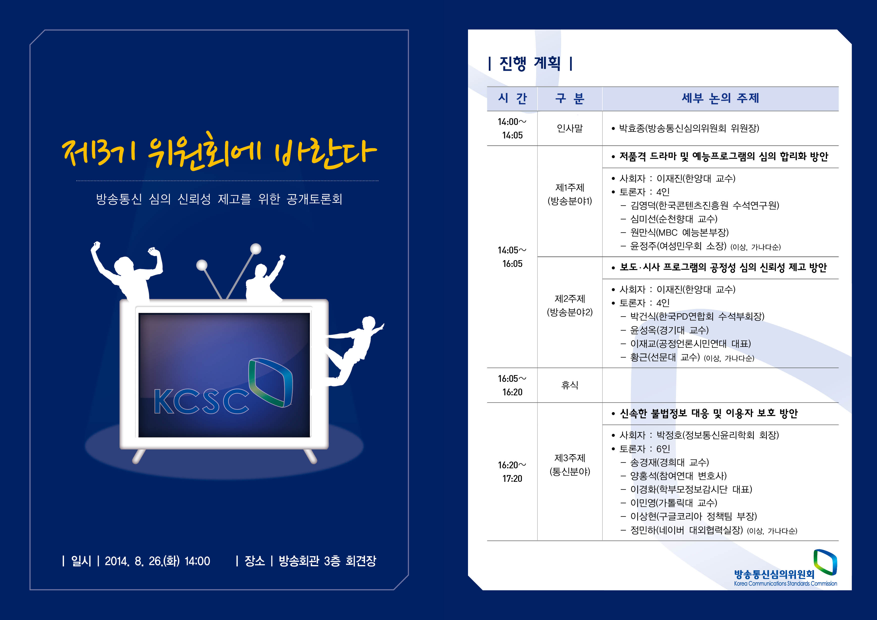 방송통신 심의 신뢰성 제고를 위한 공개토론회 개최 안내