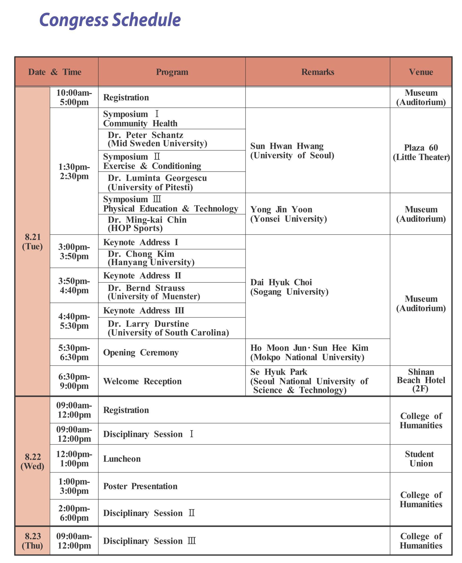 88 서울올림픽기념 2012 국제 스포츠과학 학술대회 일정