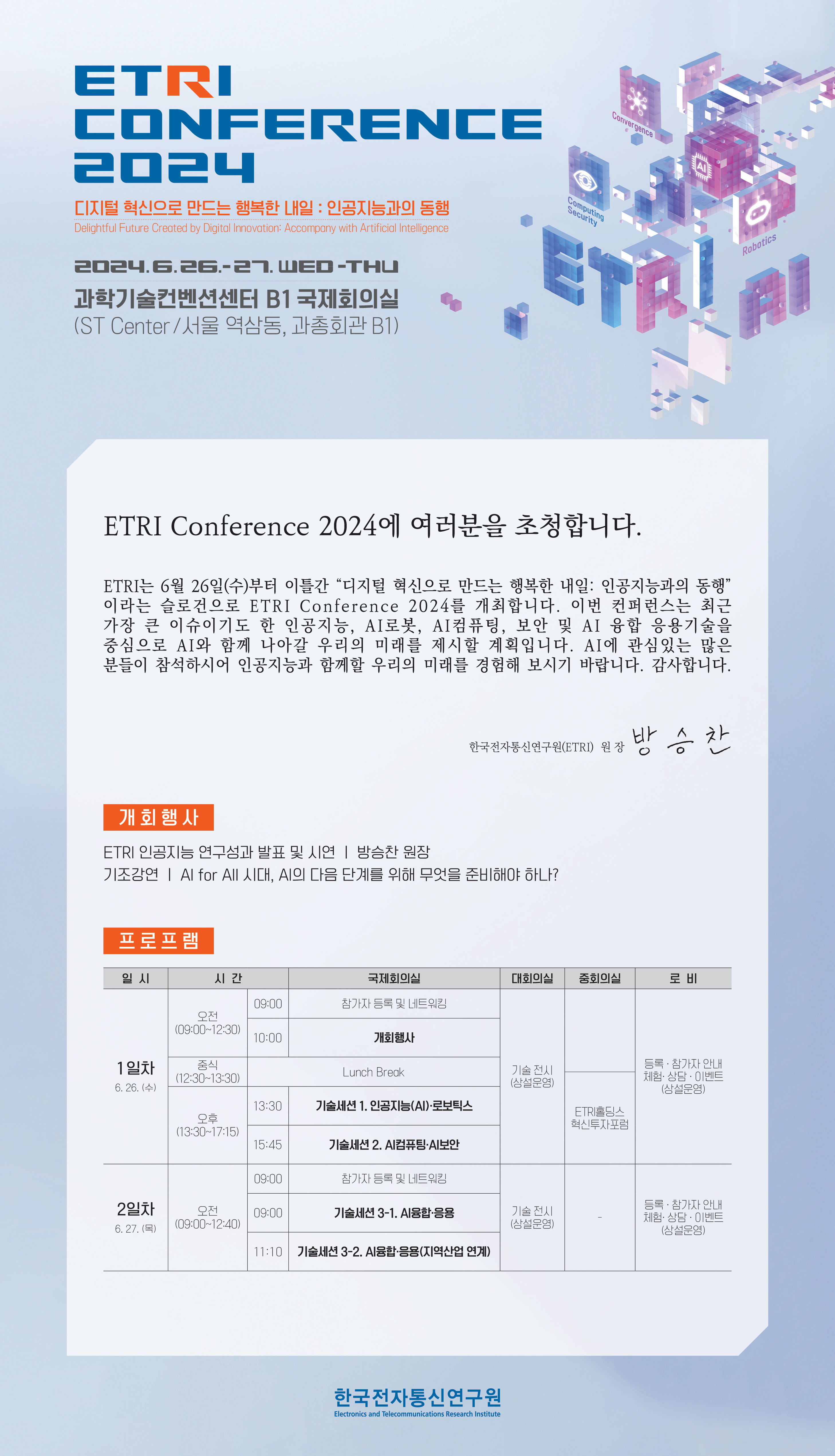 ETRI Conference 2024에 귀빈 여러분을 초청합니다.