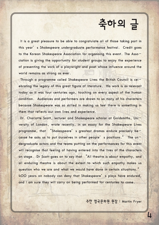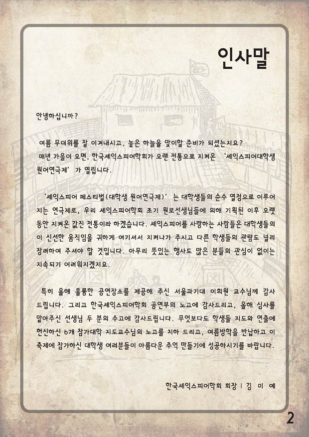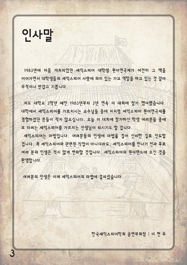 2017 셰익스피어 페스티발 "대학생 원어 연극제 안내"