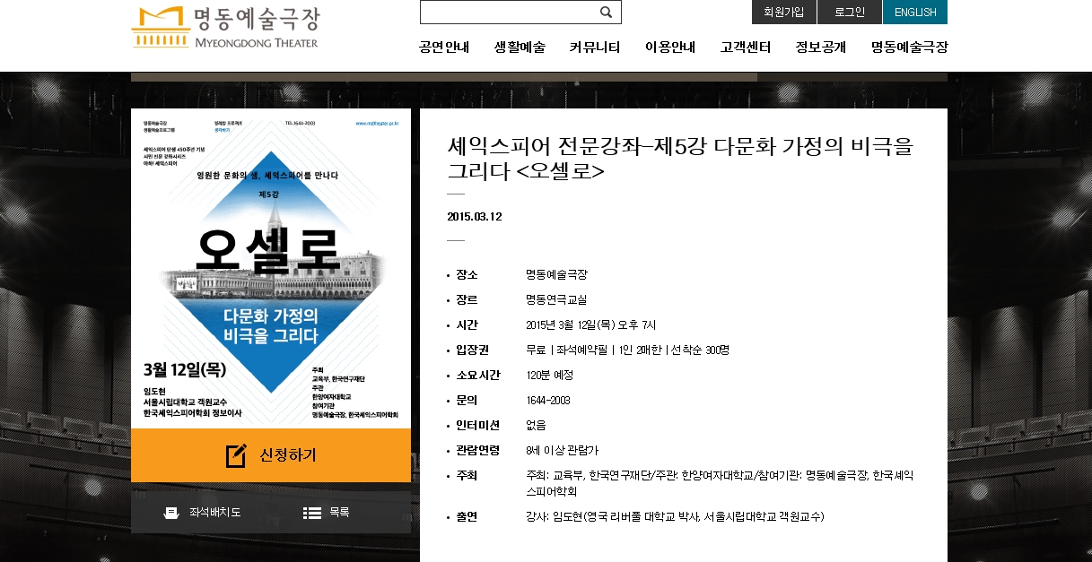 셰익스피어 탄생 450주년 기념 시민 인문강좌 시리즈- 10강 안내