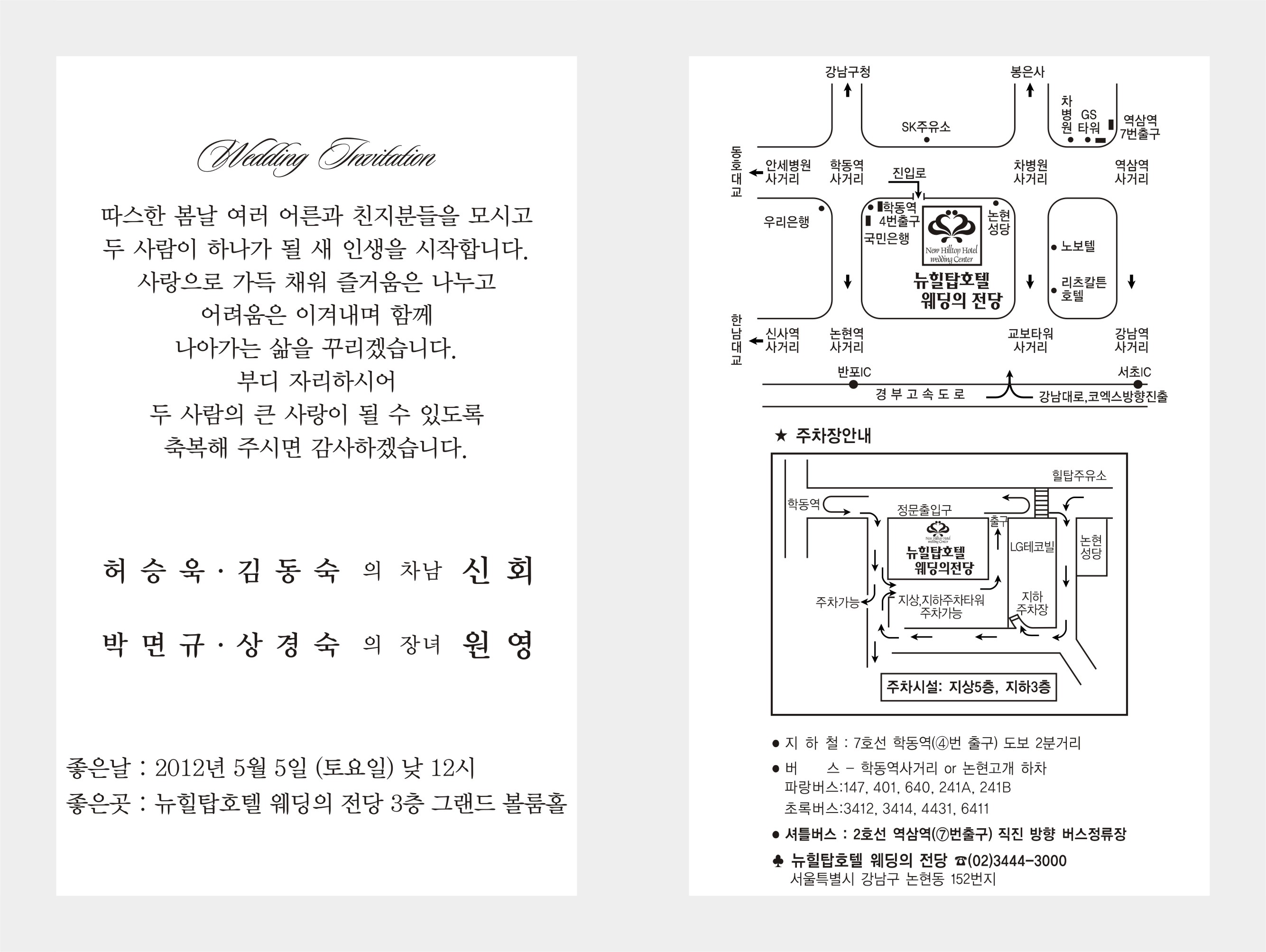 우리학회 회원이신 주한엔지니어링(주) 지반터널부 박면규 부사장의 자녀 결혼식이 아래와 같이 있사오니 많은 축복바랍니다.