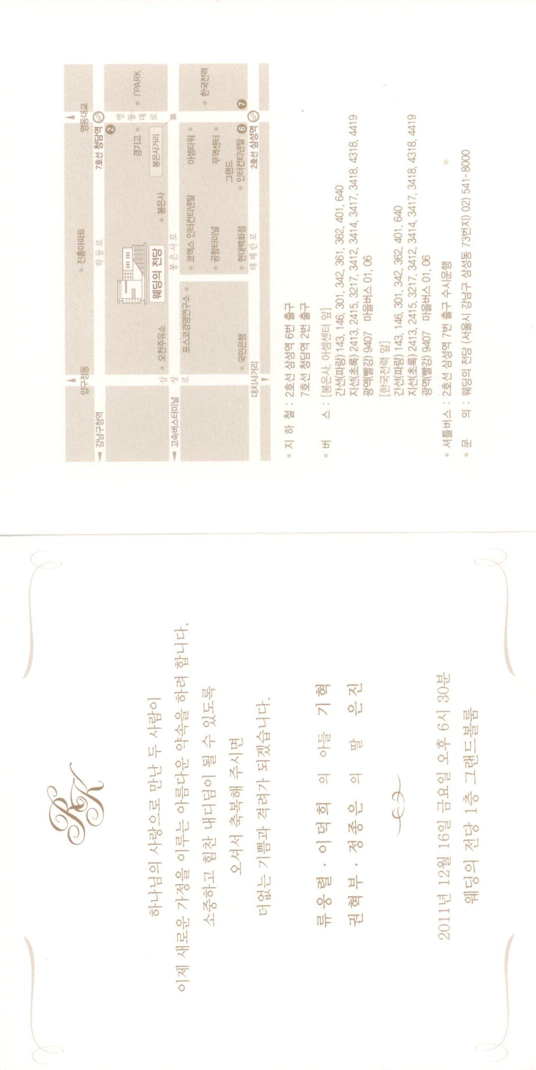 우리학회 회원이신 (주)한국종합기술 류웅렬 부사장의 자녀 결혼식이 아래와 같이 있어 안내해 드립니다.축하합니다 ^ㅡ^◎ 일 시 : 2011년 12월 16일 (금) 오후6시30분◎ 장 소 : 웨딩의 전당 1층 그랜드볼룸