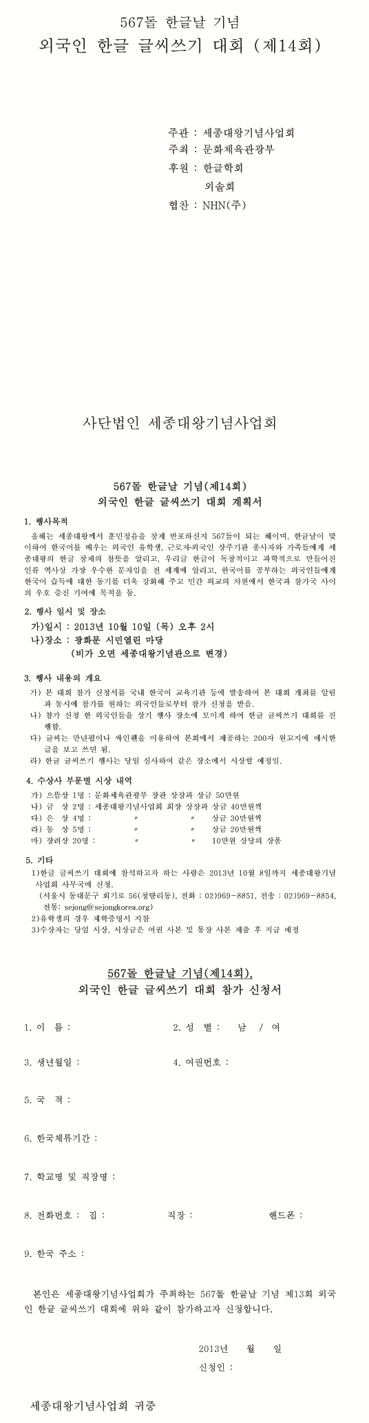 제14회 외국인 한글 글씨쓰기 대회