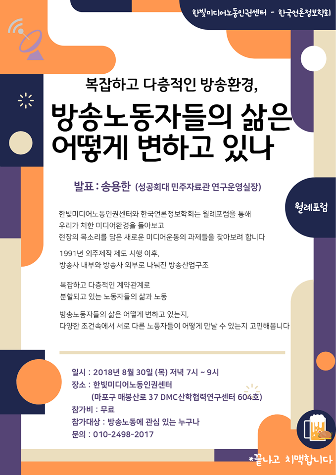 (2018-8-30 포럼) 한빛미디어노동인권센터-한국언론정보학회 월례포럼 개최