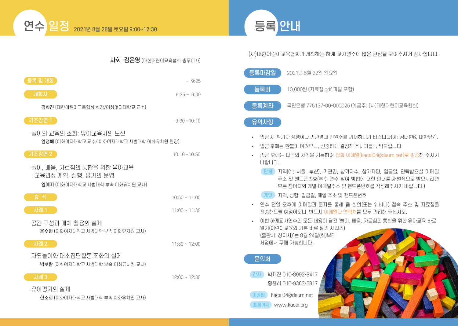 [타 기관 공지] [사단법인대한어린이교육협회] 2021 하계 교사 연수 안내