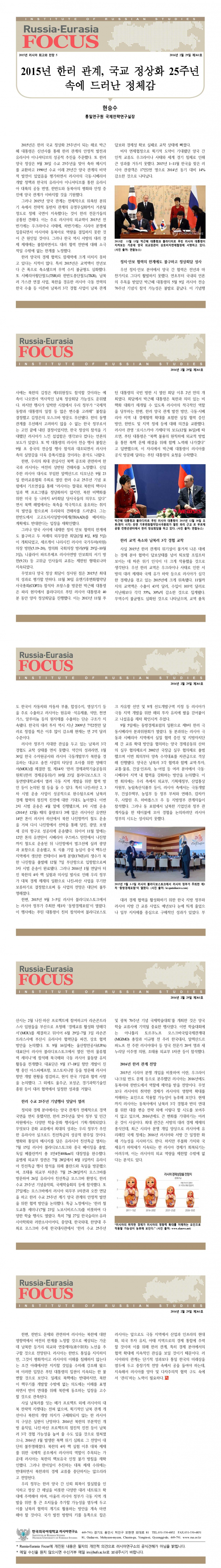 제361호 2015년 한러 관계, 국교 정상화 25주년 속에 드러난 정체감