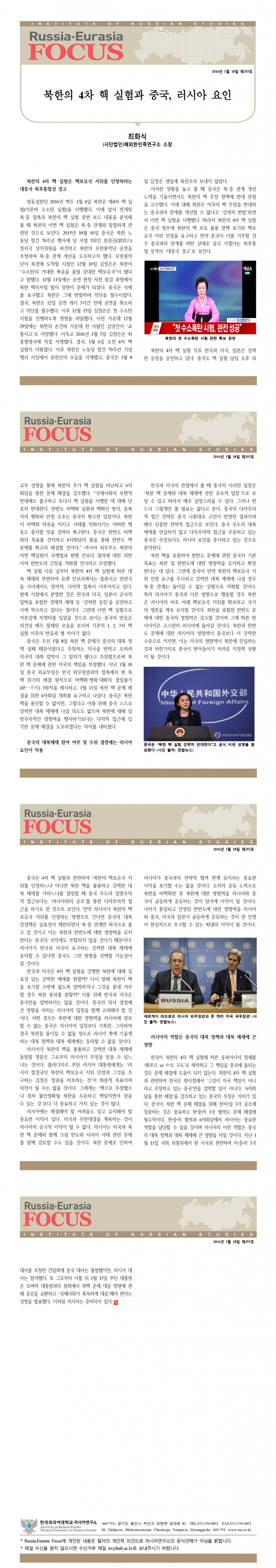 제355호 북한의 4차 핵 실험과 중국, 러시아 요인