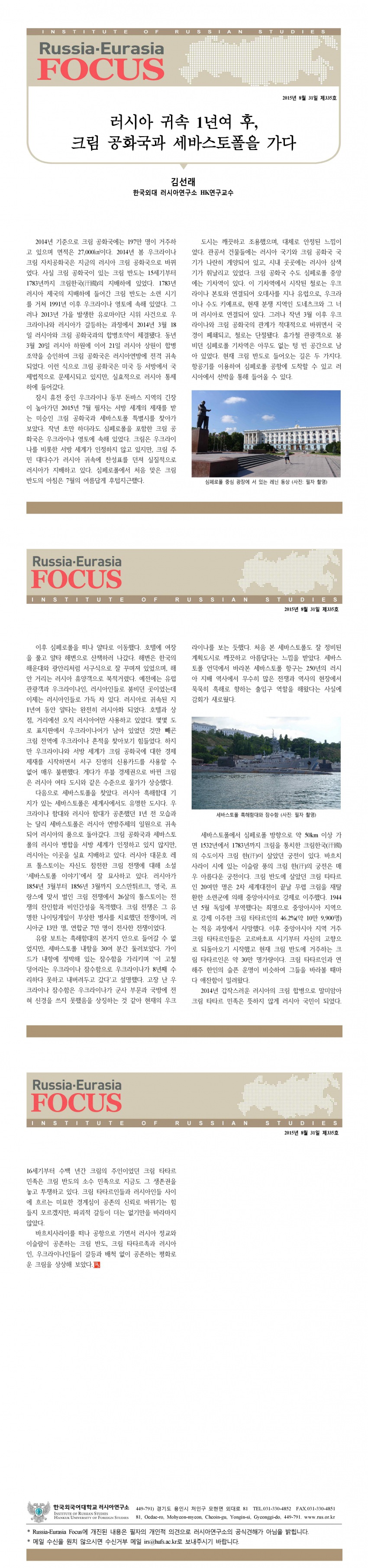 제335호 러시아 귀속 1년여 후, 크림 공화국과 세바스토폴을 가다