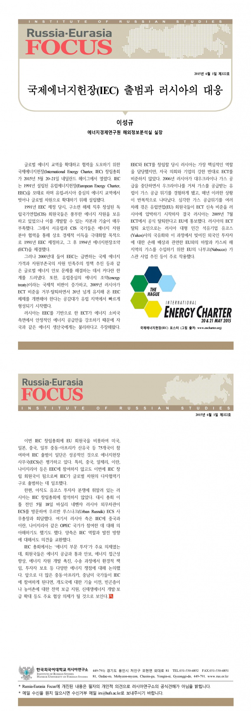 제322호 국제에너지헌장(IEC) 출범과 러시아의 대응