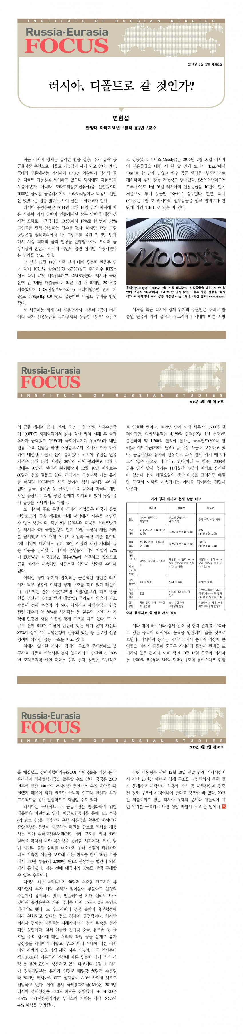 제309호 러시아, 디폴트로 갈 것인가?