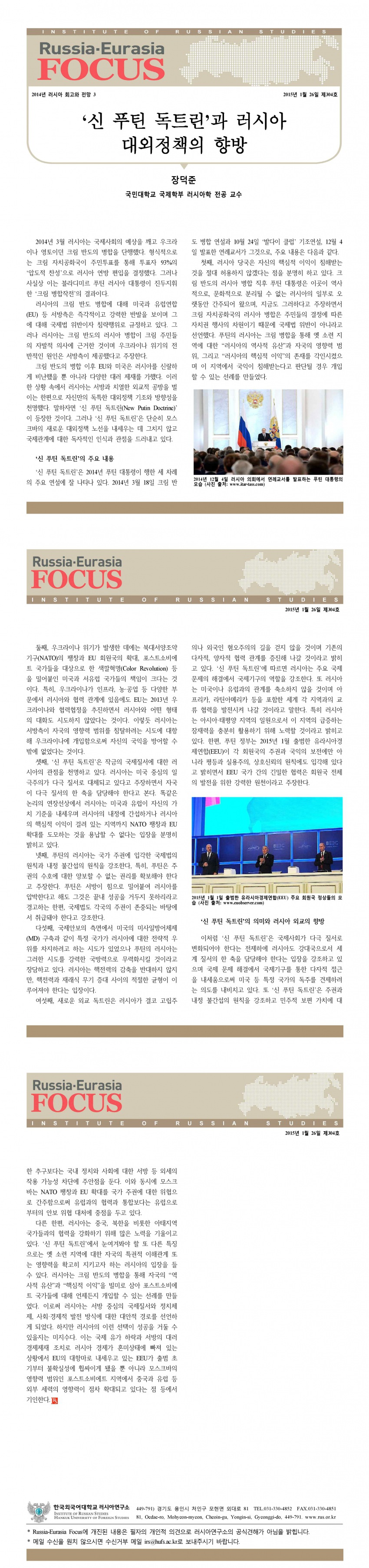제304호 ‘신 푸틴 독트린’과 러시아 대외정책의 향방