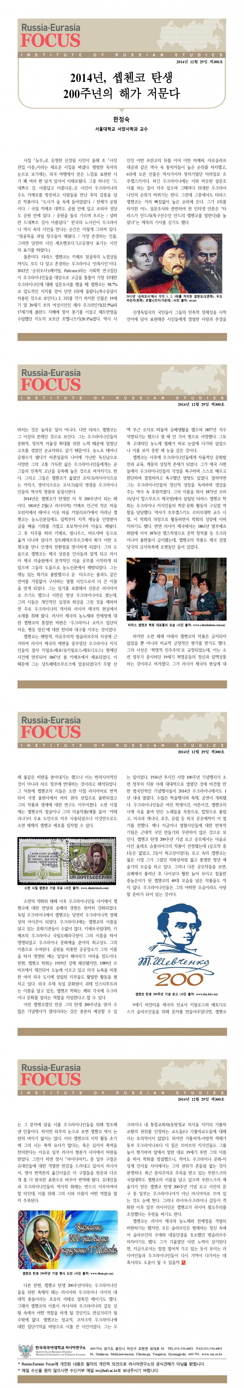 제300호 2014년, 솁셉첸코 탄생 200주년의 해가 저문다