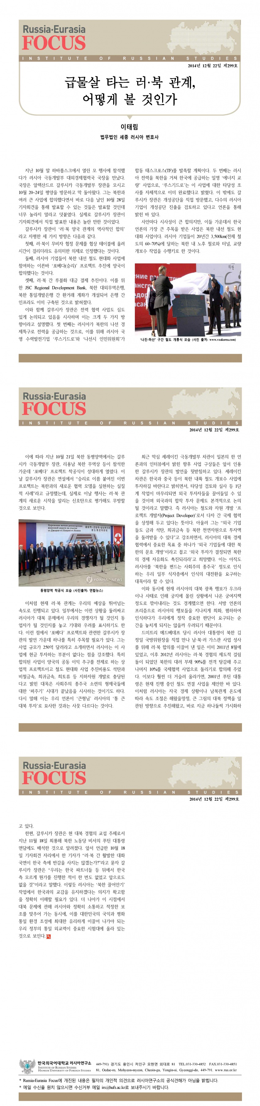제299호 급물살 타는 러·북 관계, 어떻게 볼 것인가
