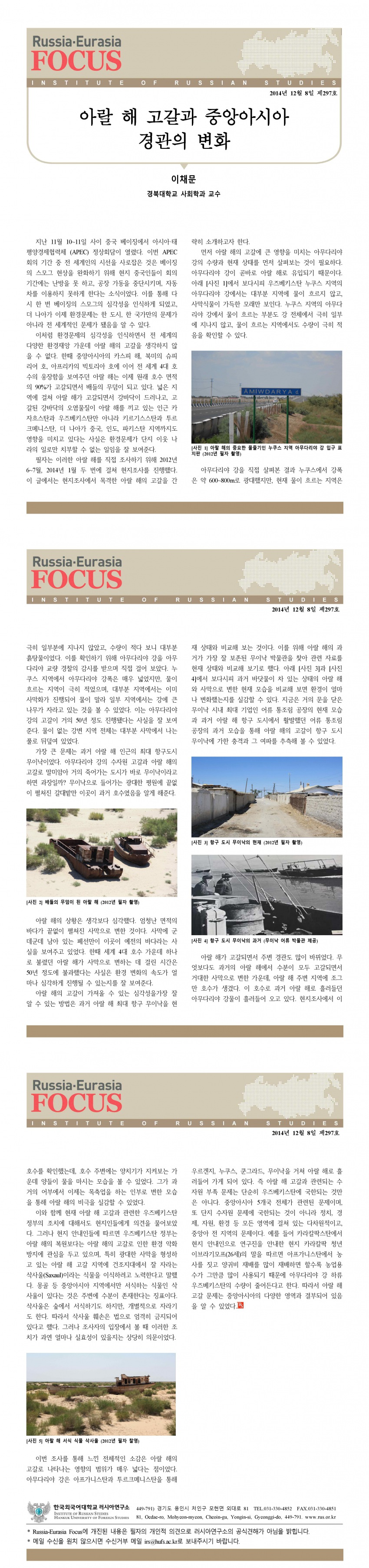 제297호 아랄 해 고갈과 중앙아시아 경관의 변화