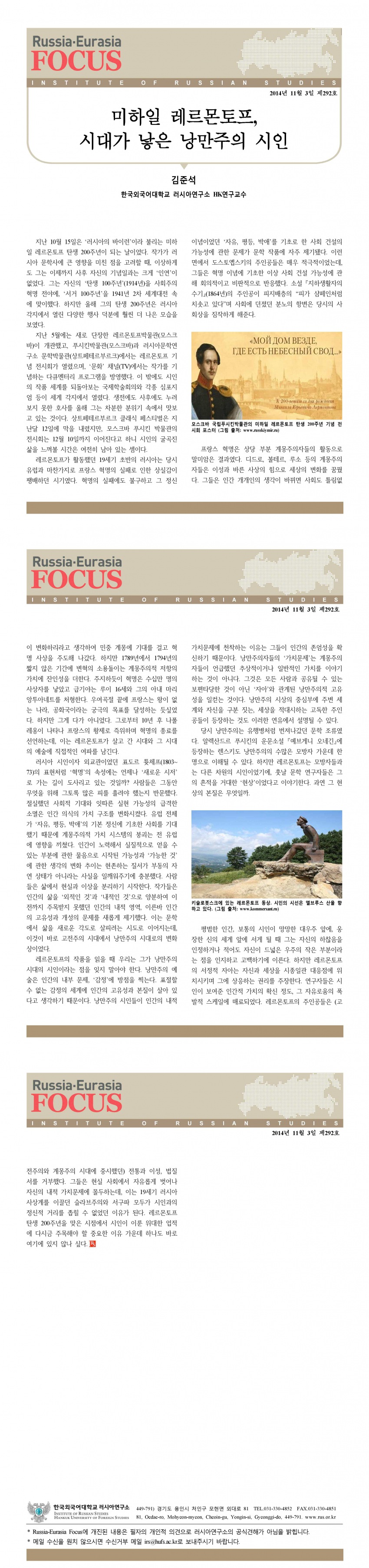 제292호 미하일 레르몬토프, 시대가 낳은 낭만주의 시인