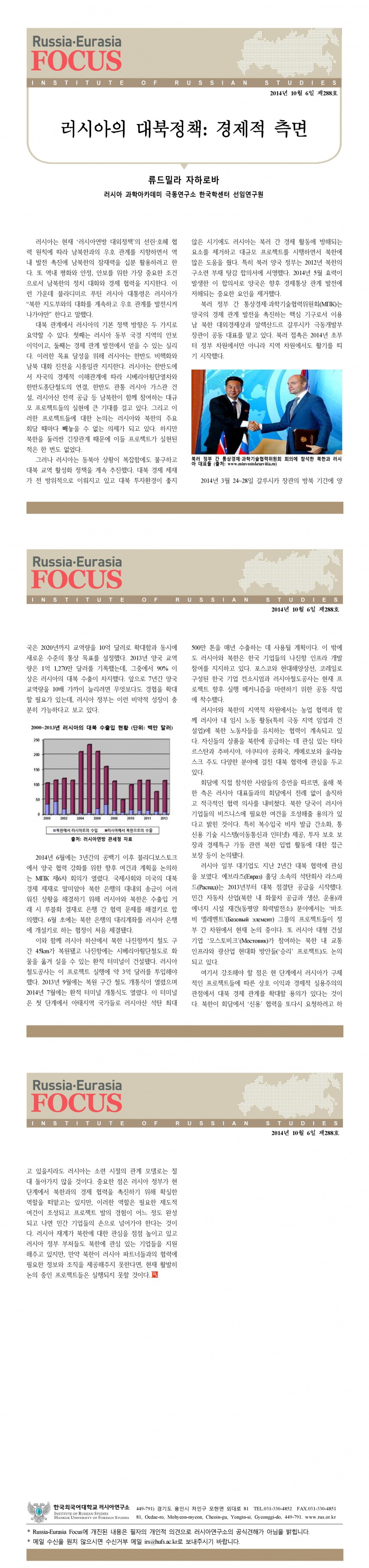 제288호 러시아의 대북정책: 경제적 측면