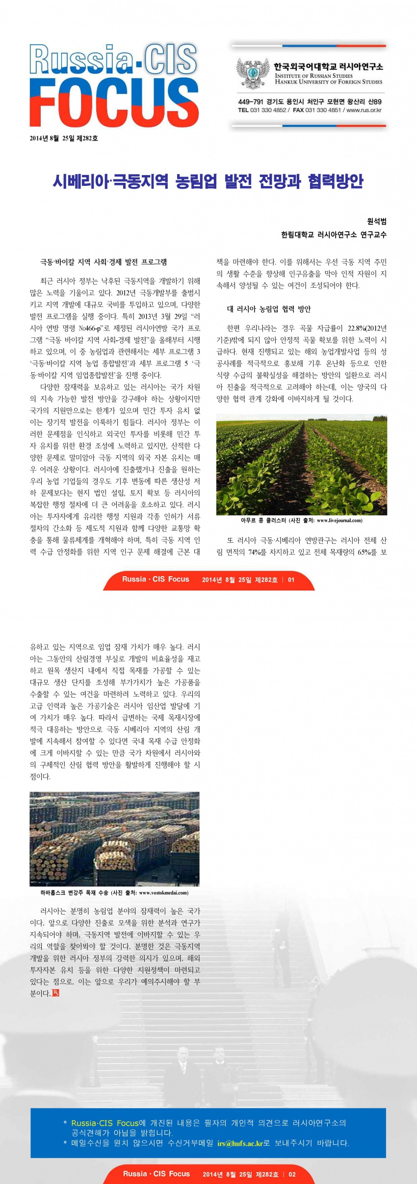 제282호 시베리아·극동지역 농림업 발전 전망과 협력방안