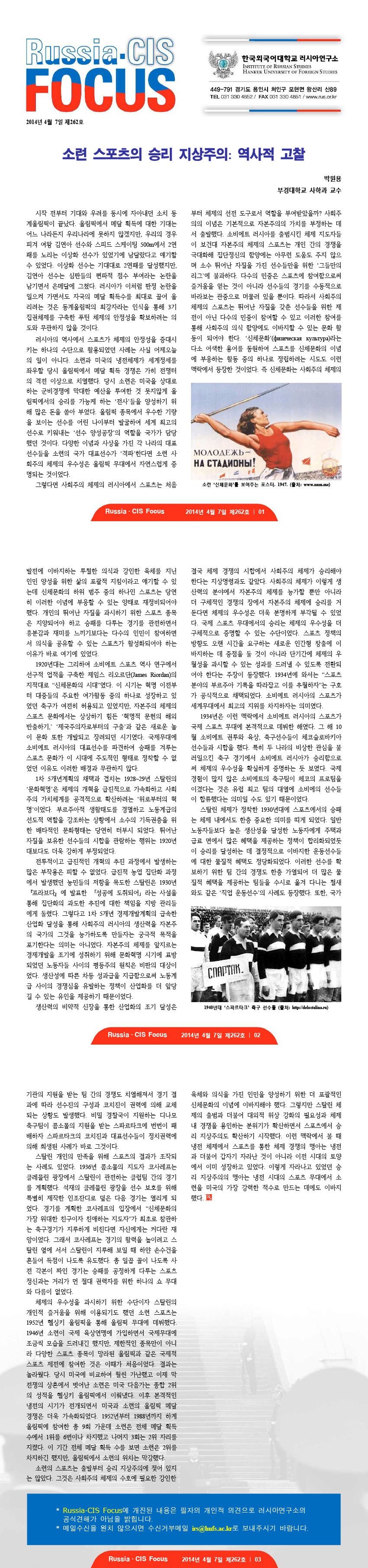 제262호 소련 스포츠의 승리 지상주의: 역사적 고찰