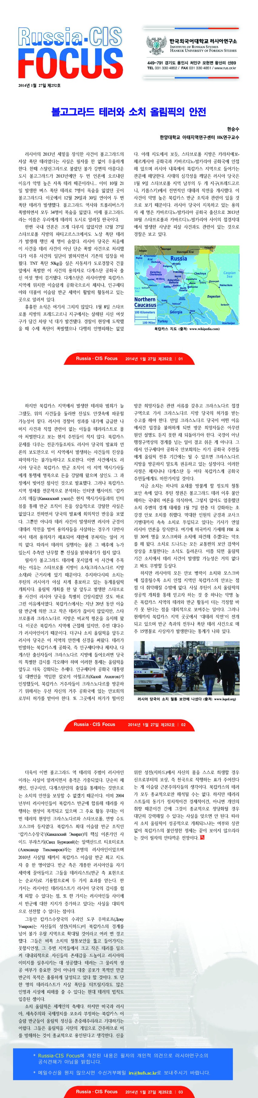 제252호 볼고그라드 테러와 소치 올림픽의 안전