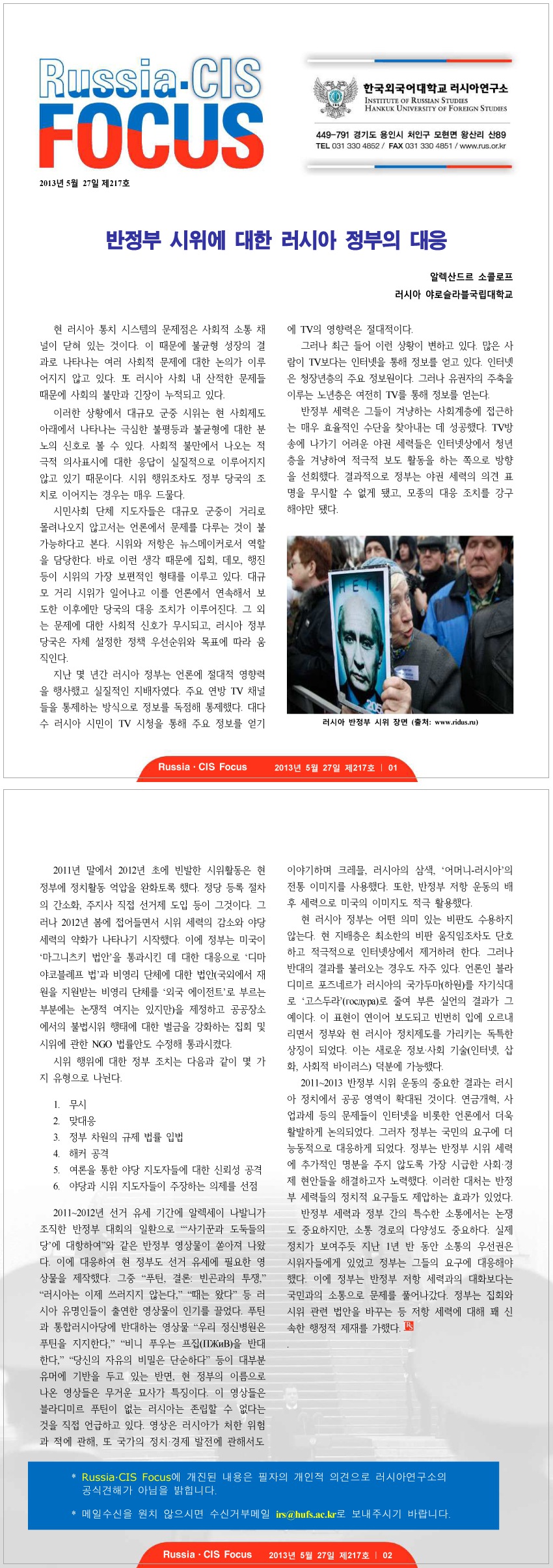 제217호 반정부 시위에 대한 러시아 정부의 대응