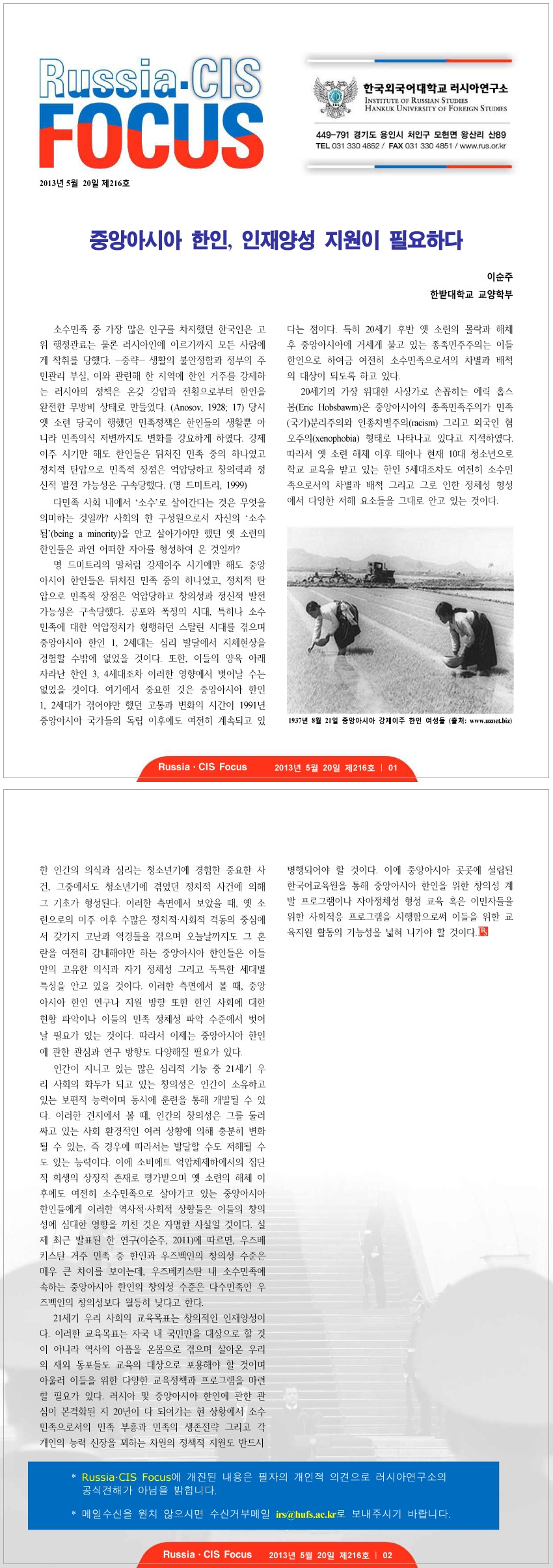 제216호 중앙아시아 한인, 인재양성 지원이 필요하다