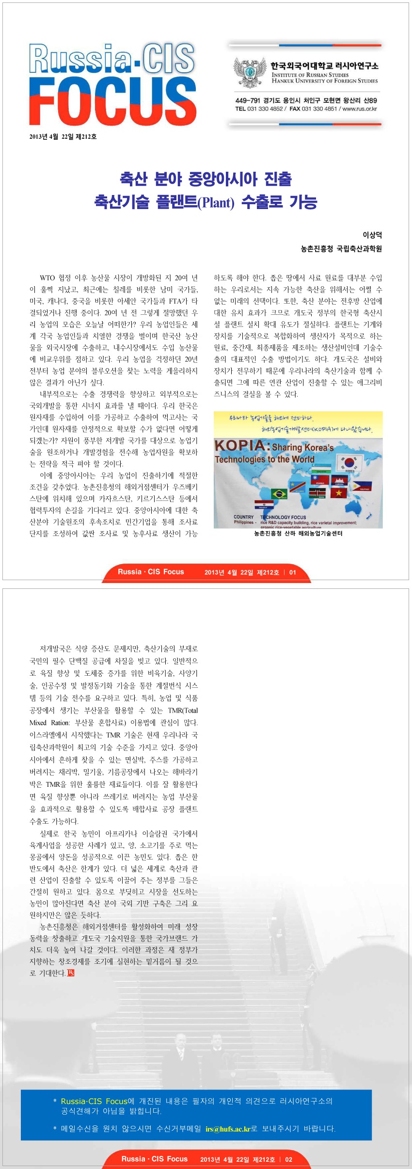 제212호 축산 분야 중앙아시아 진출 축산기술 플랜트(Plant) 수출로 가능