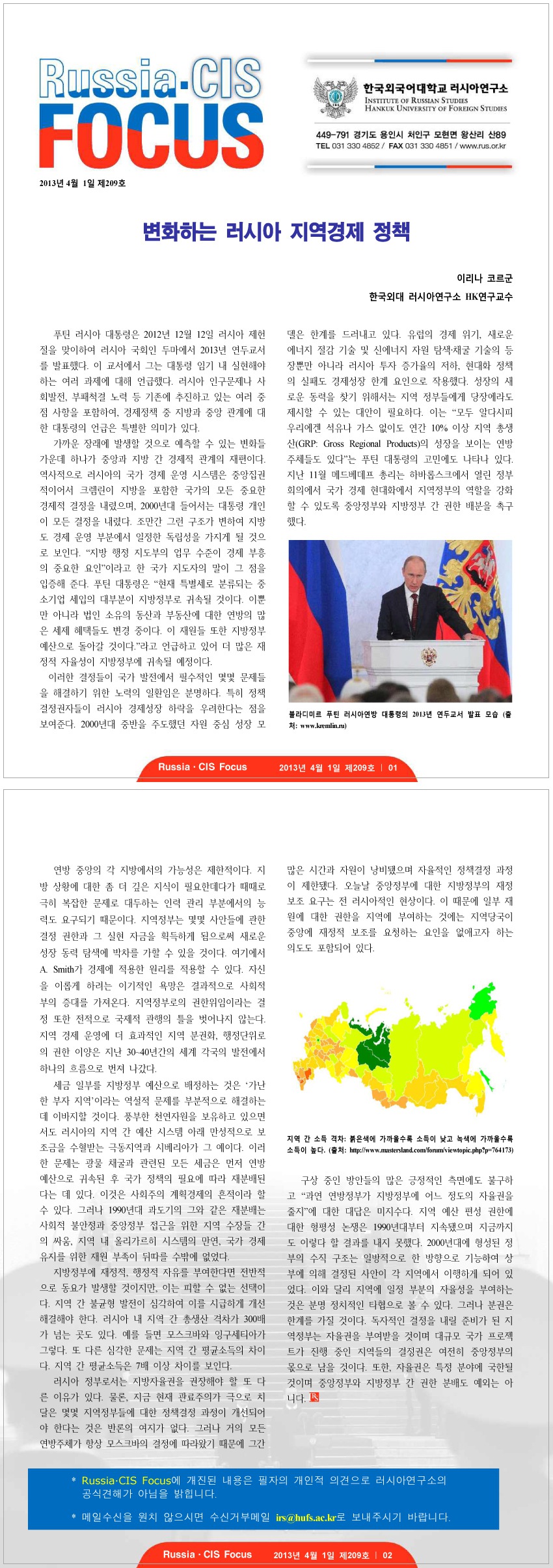 제209호 변화하는 러시아 지역경제 정책