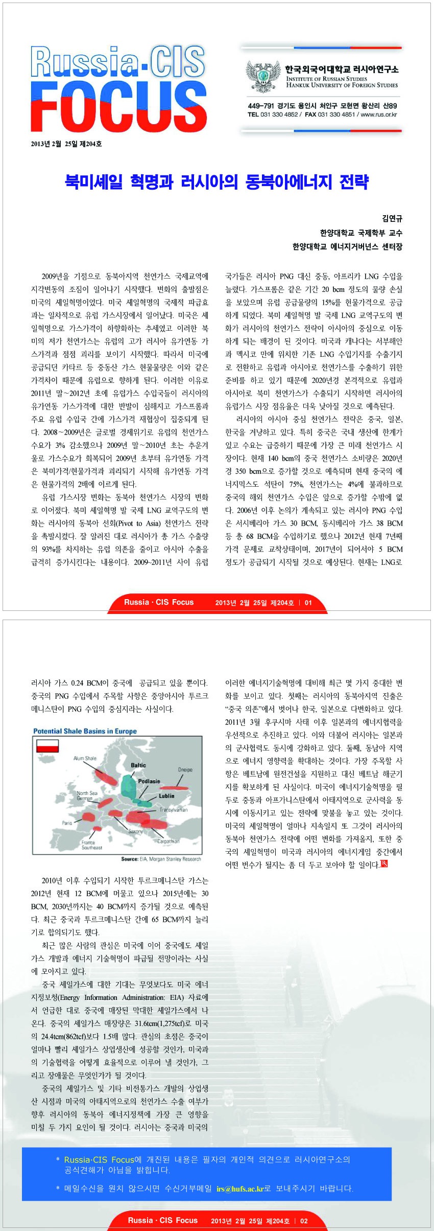 제204호 북미셰일혁명과 러시아의 동북아 에너지전략