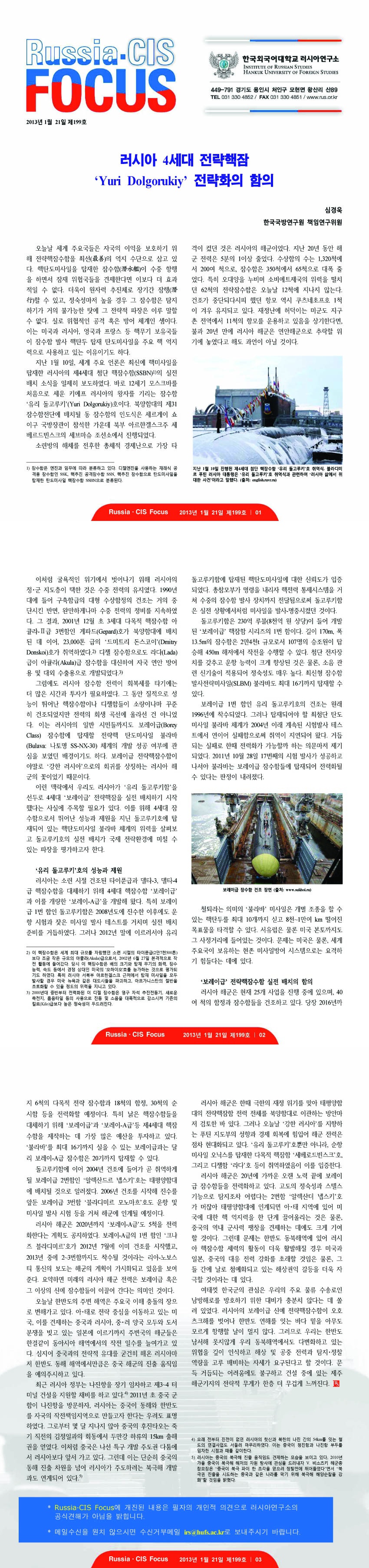 제199호 러시아 4세대 전략핵잠‘Yuri Dolgorukiy’전략화의 함의
