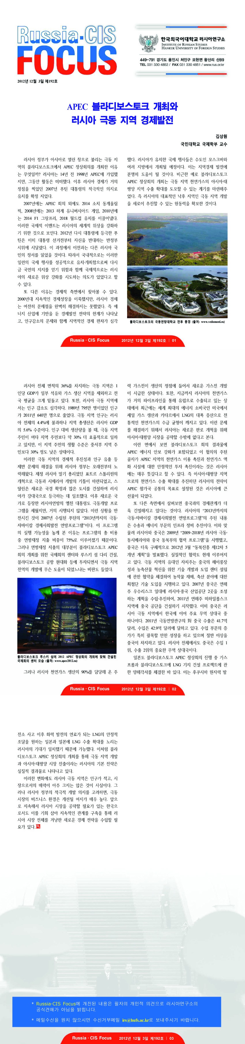 제192호 APEC 블라디보스토크 개최와 러시아 극동 지역 경제발전