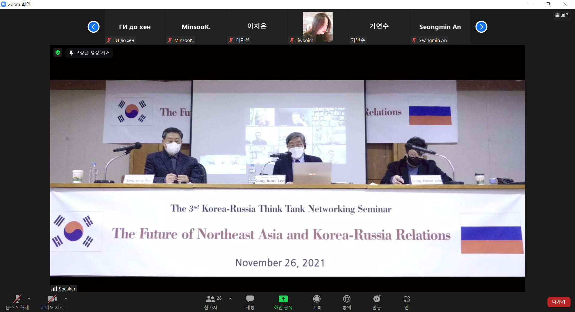 . 그리고 러시아의 확장된 유라시아 파트너십 정책과 비대면 시대 한러관계에 대한 발제가 있었다