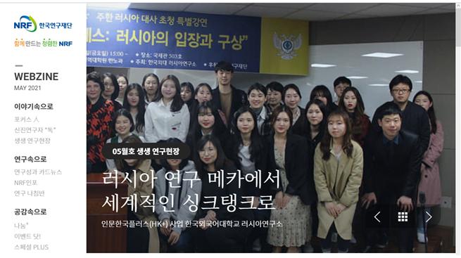 러시아연구소, 한국연구재단 WEBZINE 5월호 '생생 연구현장'에 소개되었습니다.