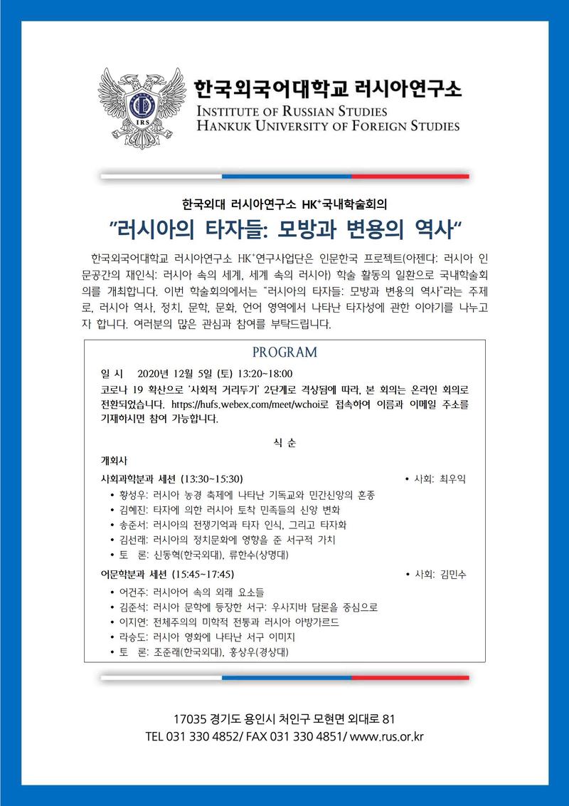 한국외대 러시아연구소 HK+ 국내학술회의 온라인 개최 주소 변경 안내
