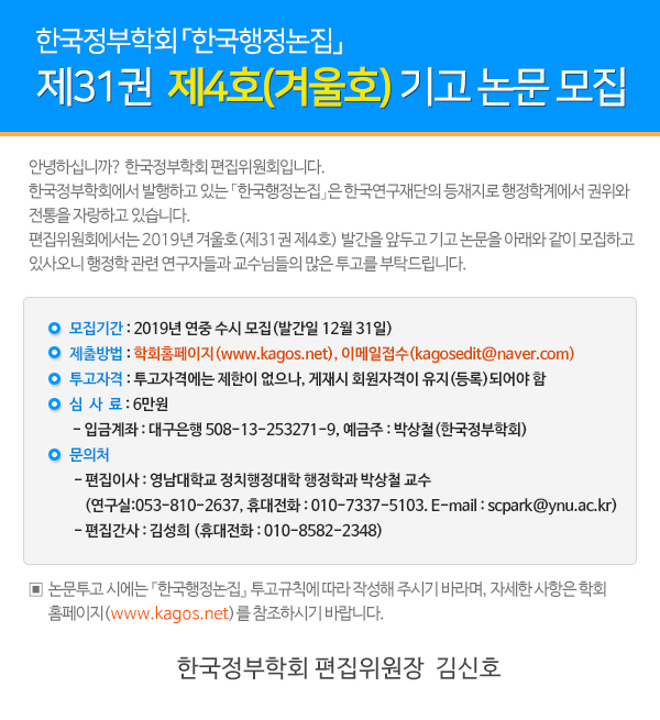 한국행정논집 제31권 제4호 논문기고 공지