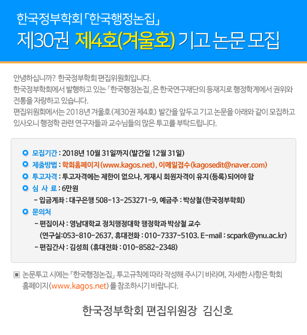 2018년도 한국정부학회 한국거버넌스 학회 공동학술대회 초대합니다