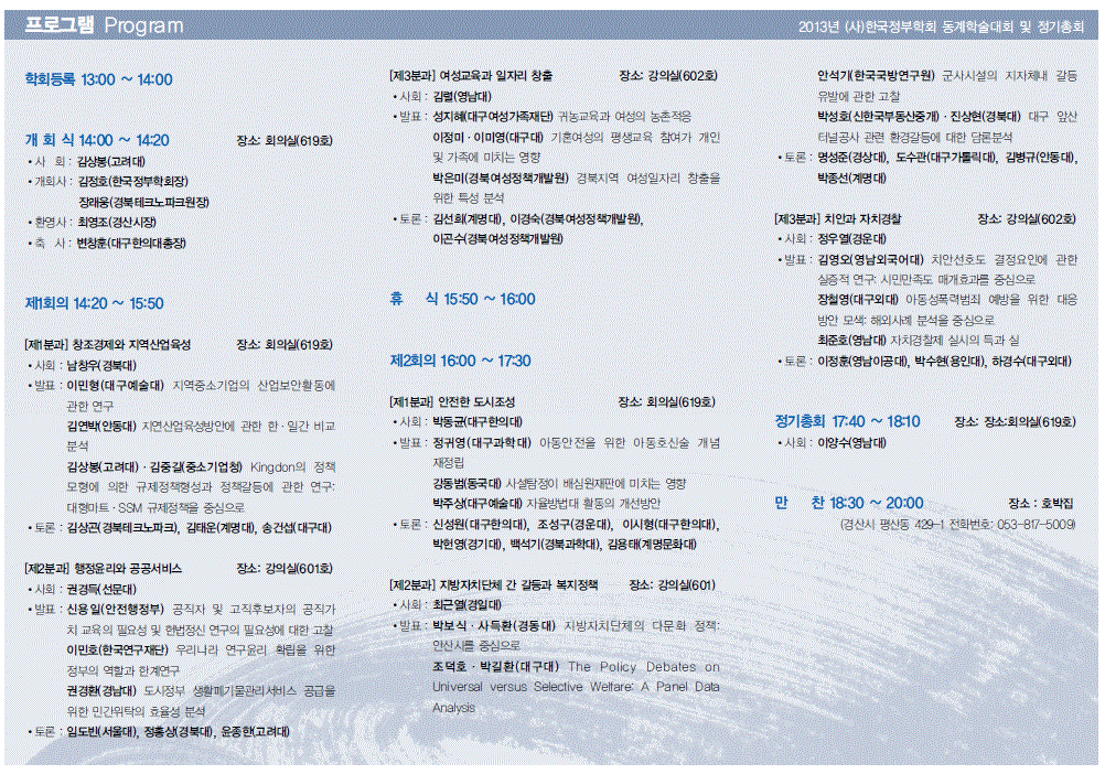 붙임 : 2013 동계학술대회 행사프로그램 1부.