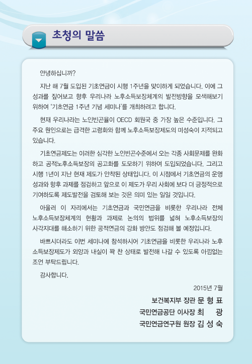 [기타] 국민연금공단 기초연금 1주년 기념세미나(7/20) (2015-07-13)