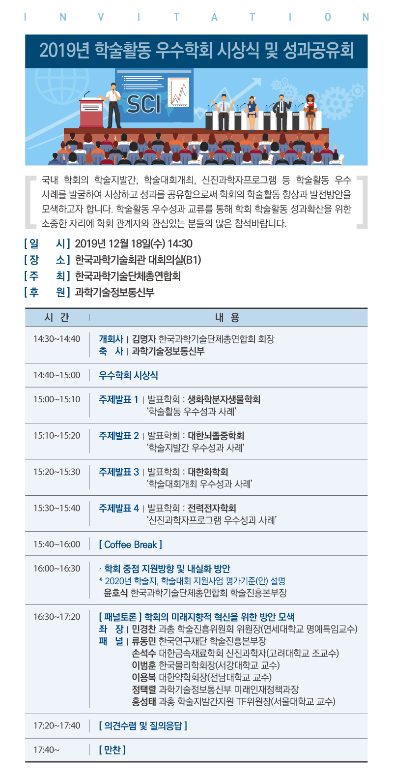 [한국과총] 2019년 학술활동 우수학회 시상식 및 성과공유회 및 '20년 과총 학술지, 학술대회지원사업 평가개선안 설명에 참