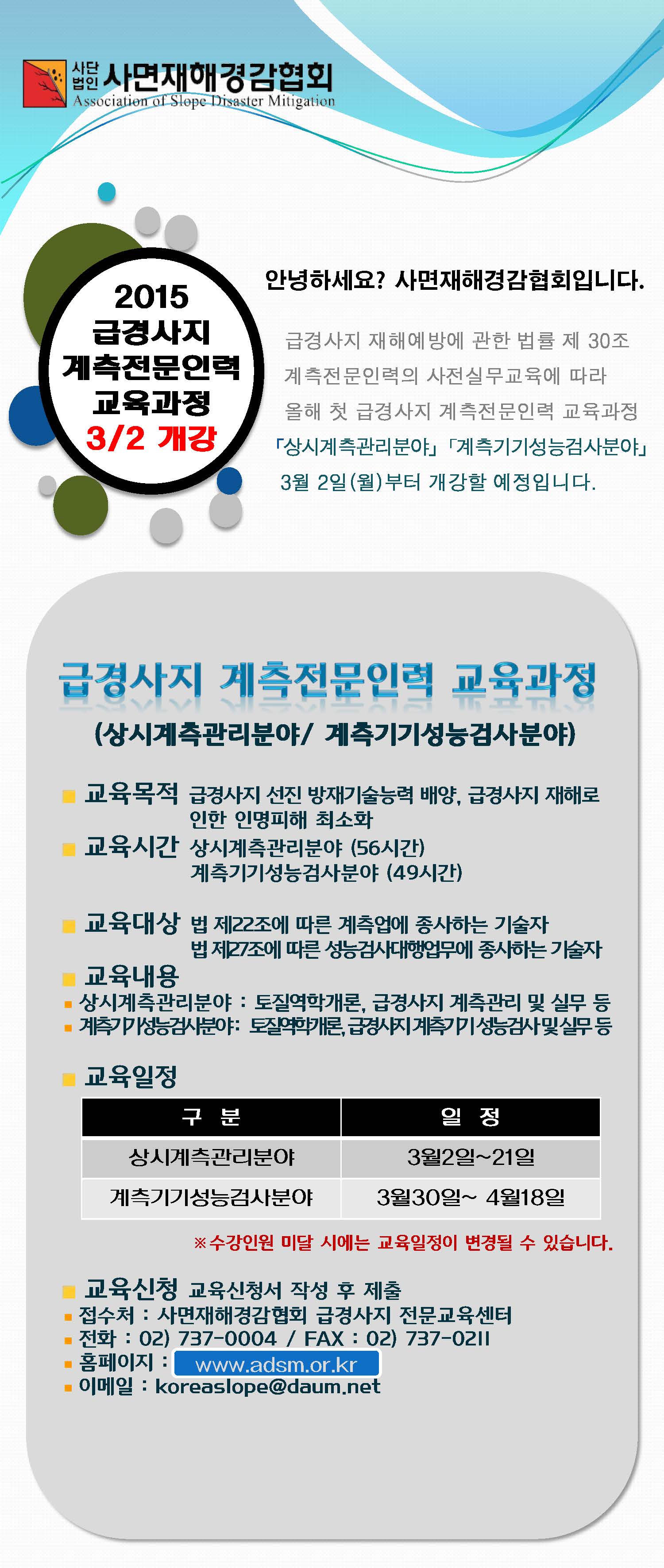 [사면재해경감협회] 2015년 급경사지 계측전문인력 교육 모집