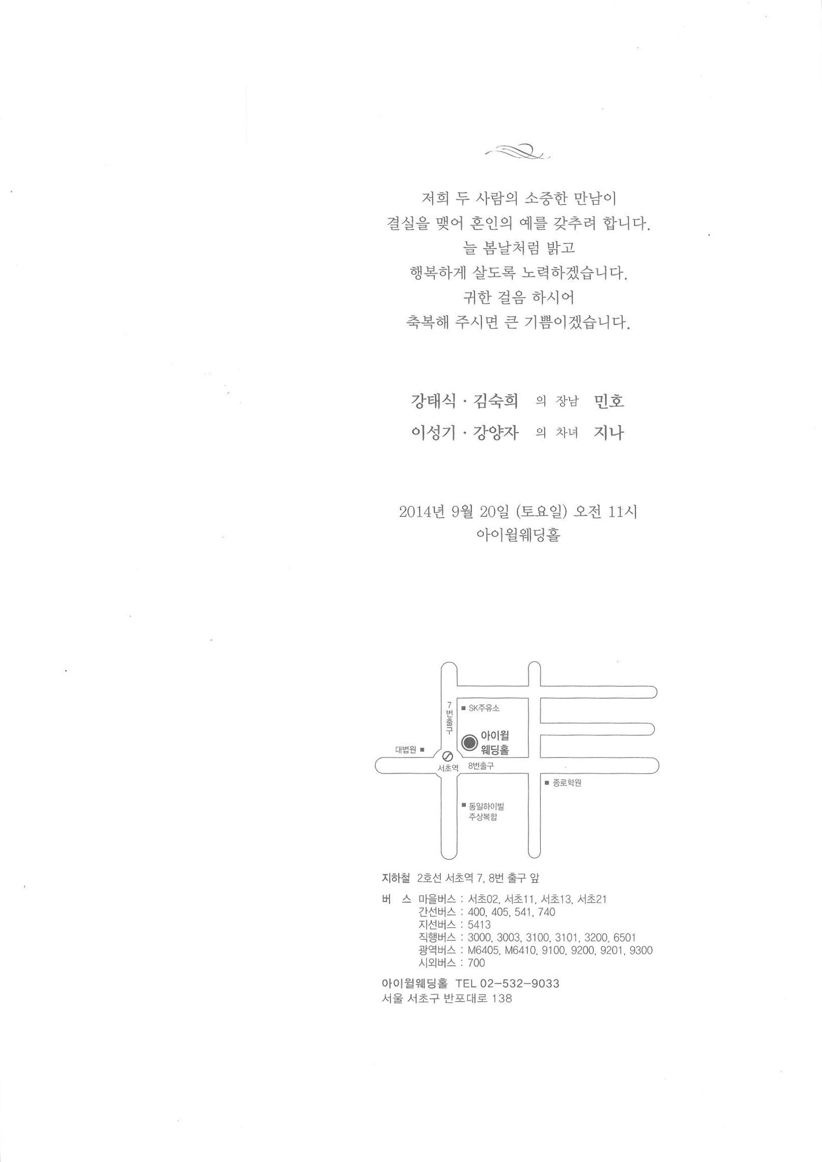 축하합니다 ^ㅡ^우리학회 회원이신 태조엔지니어링 이성기 사장의 자녀 혼사가 있어 아래와 같이 알려드리오니 회원여러분들의 많은 축복바랍니다.♡ 일 시 : 2014년 9월 20일 (토) 오전11시♡ 장 소 : 아이윌웨딩홀♡ 연락처 : 010-7665-6897