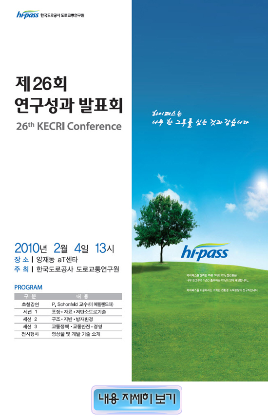 한국도로공사 도로교통연구원에서 아래와같이 연구성과 발표회를 개최하오니 많은 참여 부탁드립니다.