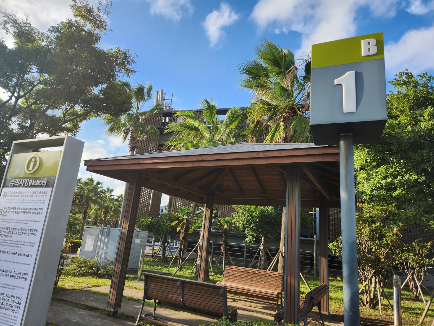 제주공항에서 학회셔틀 탑승시 주차장 B1에 있는 정자에서 대기하시거나 버스에 바로 탑승하시면 됩니다.
