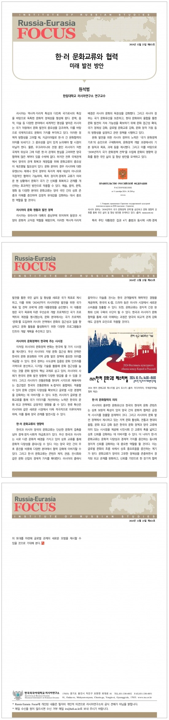 제821호 한·러 문화교류와 협력: 미래 발전 방향