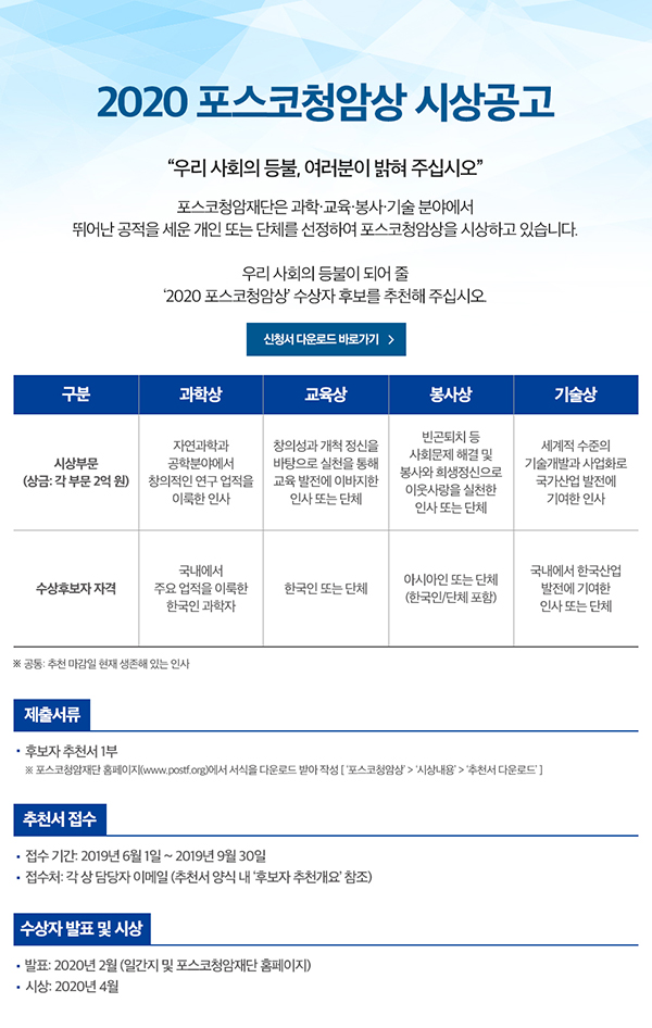 [한국연구재단] 2019년 한국과학상 및 한국공학상 선정계획 공고 안내