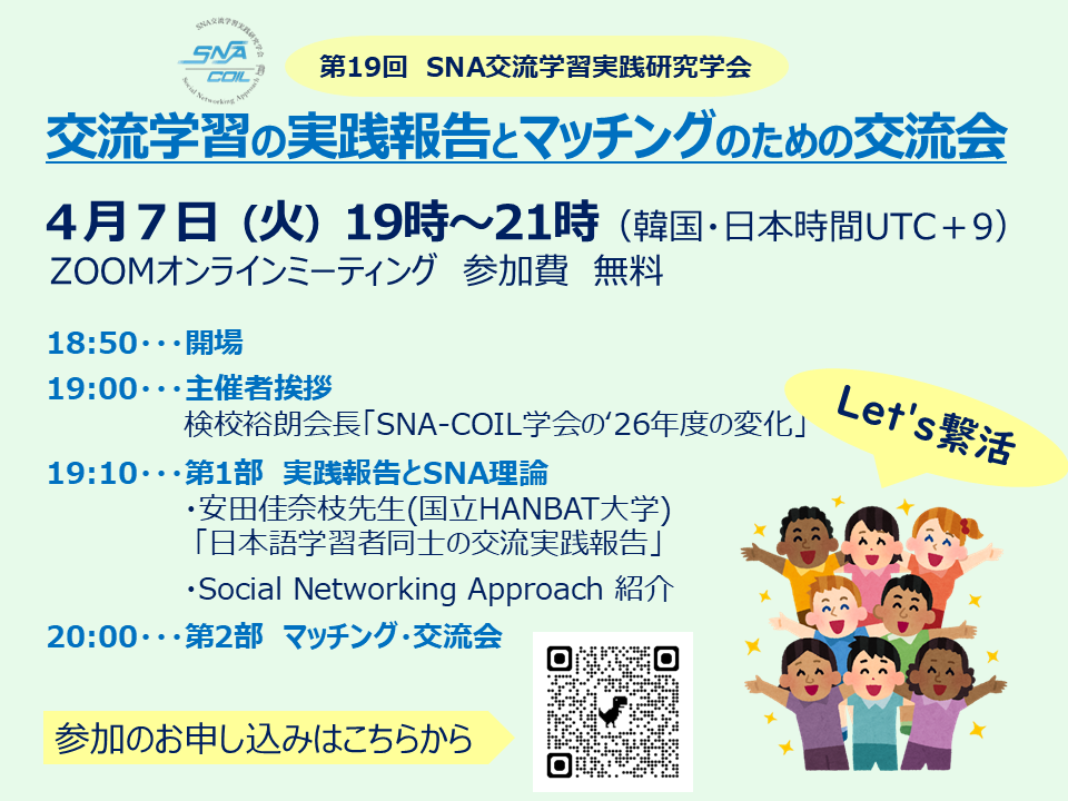SNA交流学習実践研究学会(SNA-COIL) 제19회 연구회 개최안내