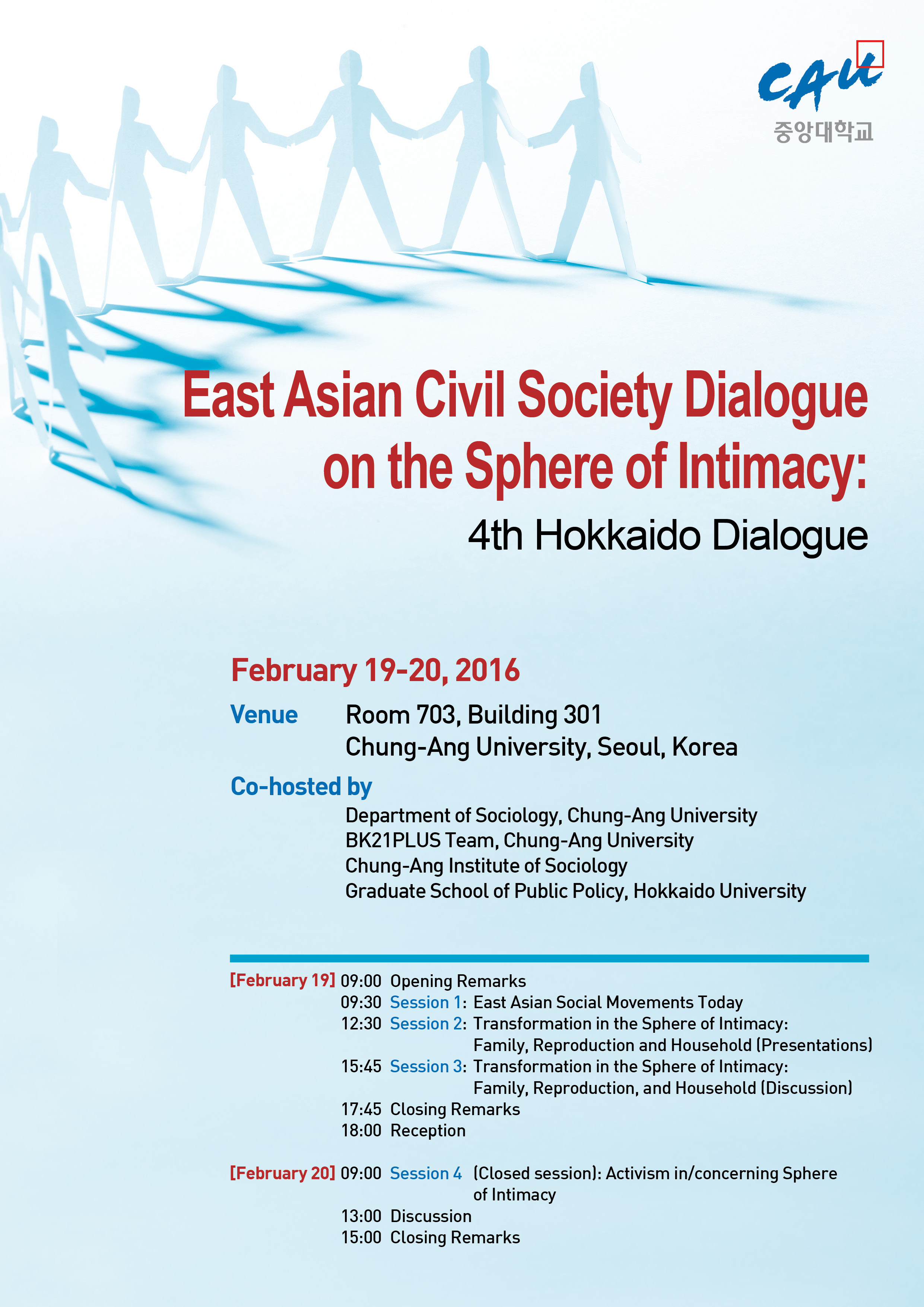 주최: 중앙대학교 사회학과, 중앙대학교 사회학과 BK 플러스 사업팀, 중앙사회학연구소, 홋카이도대학교 공공정책대학원