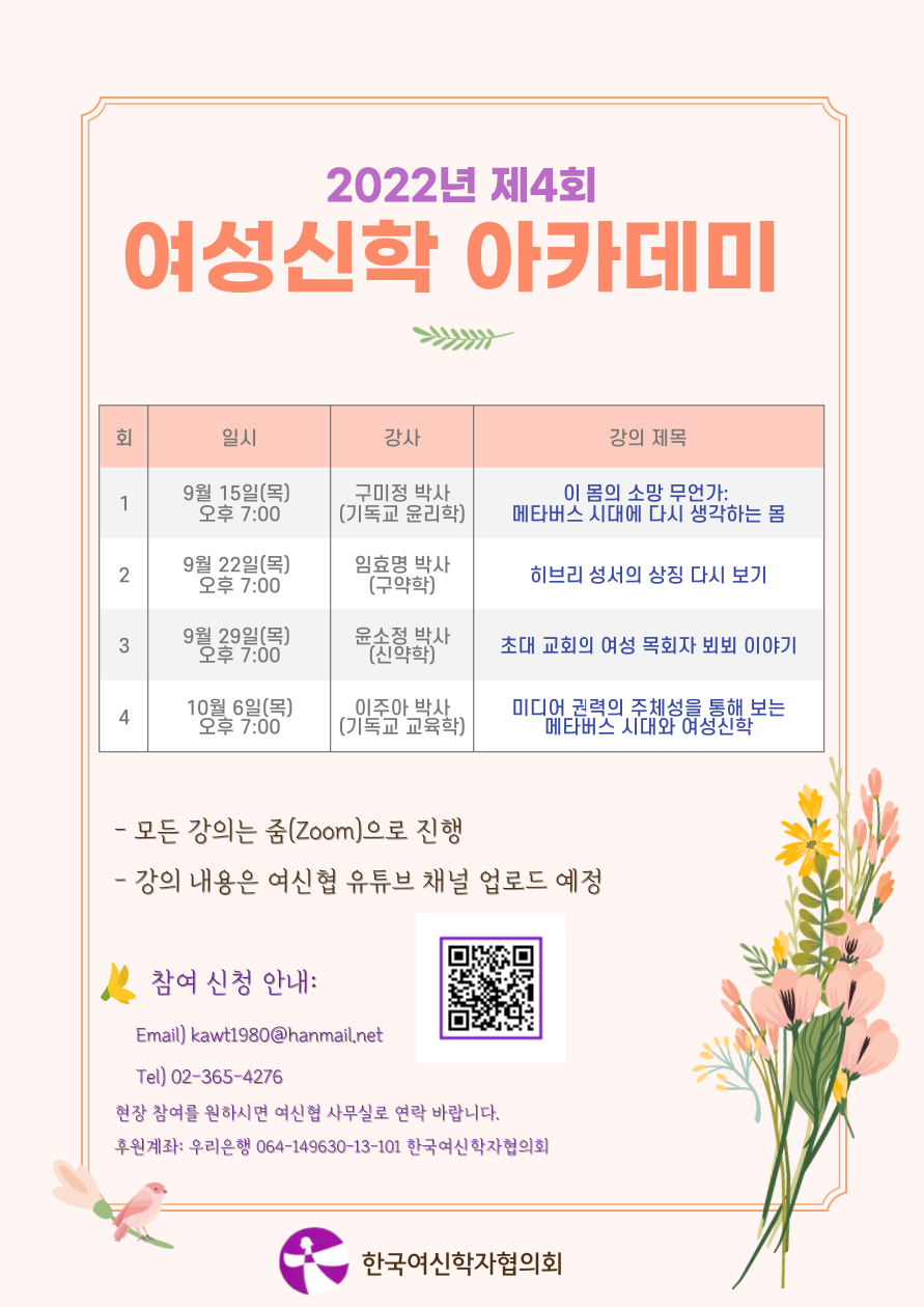 2019년 제 3회 여성신학아카데미 이후 코로나 팬데믹으로 열지 못하다가 올해 신학위원회에서 제 4회 여성신학 아카데미를 준비하게 되었습니다.